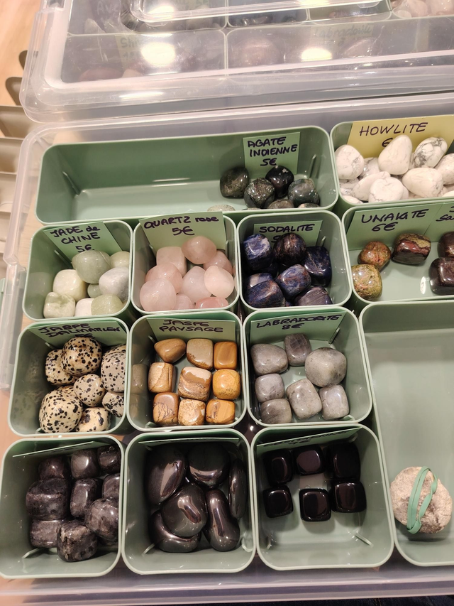 Pierre roulée choisie au hasard, forme ovale plate entre 2 et 3 cm de côté